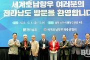 부울경문화뉴스 관리자 기자 | 세계 각국에 거주하는 호남 향우들이 글로벌 고향사랑 실천에 앞장서고 있다. 세계호남향우회 총연합회(회장 이기자)는 3일 ‘2025 세계 호남인의 날’을 기념해 전 세계 회원 250여 명과 함께 전남을 방문, 고향사랑기부금 3천만 원을 전달했다. 이번 기부는 이기자 총연합회장, 김원봉 제2대 회장, 이동수 3대 회장, 김영윤 4대 회장, 김점배 아프리카중동한인회 총연합회장, 손재민 중국호남향우회총연합회 4·5대 회장, 김용덕 동경호남향우회 11대 회장 등 주요 임원들의 참여로 이뤄졌다. 이기자 총연합회장은 “고향에 대한 그리움과 깊은 애정을 담아 기부금을 마련했다”며 “고향 발전에 보탬이 돼 기쁘고, 언제나 전남 발전을 응원한다”고 말했다. 김영록 전남도지사는 “향우들께서 해외에서도 호남인의 긍지를 지키면서 고향 발전을 위해 지속해서 힘을 보태주고, 전남에 어려움이 있을 때마다 앞장서준 것에 깊은 감사의 뜻을 전한다”며 “고향을 향한 각별한 관심과 성원에 보답하도록 최선을 다하겠다”고 말했다. 세계호남향우회총연합회는 2013년 창설돼 27개 나라 75개 지역