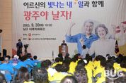 부울경문화뉴스 관리자 기자 | 광주광역시는 30일 남구 진월동 남구다목적체육관에서 ‘제29회 노인의 날’ 기념행사를 개최했다. ‘노인의 날’(10월2일)은 고령화로 심화하는 노인 문제에 대한 사회적 관심을 높이고, 어르신들에 대한 공경과 감사한 마음을 새기기 위해 1997년 보건복지부가 제정한 법정기념일이다. 이날 기념행사는 강기정 시장을 비롯해 지역 어르신 1000여명, 각급 기관·단체장들이 참석한 가운데 노인강령·경로헌장 낭독, 노인복지 증진에 헌신한 개인·단체 등 유공자 포상, 어울림 한마당 순으로 진행됐다. 유공자는 모범노인 분야에서 이광중 ㈔대한노인회 광주남구지회 부지회장이 대통령 표창을, 노인복지 분야에서 빛고을노인건강타운이 국무총리 표창을 수상했다. 이와 함께 보건복지부장관 표창 8명, 광주광역시장 표창 시민·단체·공무원 20명이 수상했다. 기념식에 이어 어르신 장기자랑, 건강 체조 등 화합의 어울림 한마당이 열렸다. 광주시는 올해 100세를 맞은 어르신 62명에게 정부가 증정하는 장수지팡이 ‘청려장’(명아주 풀로 만든 가볍고 단단한 지팡이)을 전달하며 건강과