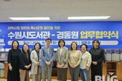 부울경문화뉴스 관리자 기자 | 수원시도서관과 사회복지법인 경동원은 14일 경동원에서 ‘교류 협력을 위한 업무협약’을 체결했다. 공공도서관과 지역 복지기관이 함께 어린이의 독서 접근성을 높이고, 독서 친화적 성장환경을 조성하기 위한 협약이다. 수원시도서관은 경동원 어린이를 위한 독서 활동 프로그램과 도서 기부, 독서 서비스, 공연 등 다양한 독서문화 진흥 사업을 추진할 계획이다. 두 기관은 지역사회 어린이 보육 기관과 연계해 창의력과 표현력을 키울 수 있는 독서교육 프로그램을 운영하고, 교육·문화 협력을 위한 지속 가능한 교류 체계를 이어가기로 했다. ‘아이들을 위한 스토리텔링과 책놀이’ 프로그램을 10월 14일부터 11월 4일까지 매주 화요일 경동원에서 진행한다. 스토리텔링과 책놀이로 어린이의 창의력 발달을 돕고, 교사의 소통 능력을 높이는 내용으로 구성됐다. 이날 협약식에는 김병수 도서관사업소장, 신승주 경동원장, 이명옥 선경도서관장 등이 참석했다. 김병수 도서관사업소장은 “이번 협약은 어린이들의 독서 환경 격차를 줄이고, 누구나 동등하게 독서문화의 혜택을 누리도록 하기 위한 공동의