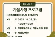 부울경문화뉴스 관리자 기자 | 홍성군 고암이응노생가기념관은 오는 26일 오후 2시부터 4시까지, ‘가을사생 프로그램’을 운영한다고 밝혔다. 이번 프로그램은 가을 정취가 무르익은 이응노의 집 주변 풍경을 배경으로, 참가자들이 직접 자신만의 시선으로 자연의 색감을 담아내는 야외 사생 체험으로 구성됐다. 고암 이응노 화백의 예술 정신을 되새기며, 자연 속에서 창의성과 감성을 발휘할 수 있는 시간이 될 것으로 기대된다. 이번 행사는 고암학술연구실 교육실과 이응노의 집 일원에서 진행되며, 행사 당일 참가자들은 고암이응노생가기념관의 교육실에서 간단한 사전 오리엔테이션을 진행한 뒤, 이응노의 집 주변 일대에서 자유롭게 작품을 완성하는 시간을 갖게 된다. 참여 신청은 홍성군 통합예약시스템을 통해 가능하며, 프로그램에 대한 자세한 문의는 고암이응노생가기념관으로 하면 된다. 윤상구 문화유산과장은 “가을사생 프로그램은 자연의 변화 속에서 예술적 영감을 얻고, 고암 선생의 예술세계를 몸소 체험할 수 있는 의미 있는 시간”이라며, “가족 단위 참가자나 미술에 관심 있는 누구나 함께 참여해 예술의 계절을 즐기시길 바란다”고 전했다. &