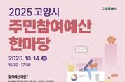 부울경문화뉴스 관리자 기자 | 고양특례시는 오는 10월 14일 오후 3시 30분, 일산호수공원 고양꽃전시관(북카페)에서 ‘2025년 고양특례시 주민참여예산 한마당’을 개최한다고 밝혔다. 주민참여예산제는 예산 과정에 시민이 직접 참여함으로써 지역의 주인 의식을 높이고 재정민주주의를 실현하는 중요한 제도다. 시는 지난해 7월부터 올해 6월 말까지 온오프라인을 통해 총 250건의 주민 제안사업을 접수받았다. 이후 소관 부서의 검토와 주민참여예산위원회의 심사를 거쳐 온라인 시민투표를 실시하고 그 결과를 이번 행사에서 공개할 예정이다. 현재 고양시청 누리집(홈페이지)에서는 2026년도 주민참여예산 제안사업에 대한 사전 온라인 시민투표(9.26.~10.8.)가 진행 중이다. 이번 행사에서는 2025년도 주민참여예산으로 반영돼 실제로 실행된 사업 중 우수 실행사례도 함께 소개된다. 주민참여예산의 의미를 시민들과 다시 공유하고, 향후 제도의 발전 방향을 함께 모색하는 자리가 될 예정이다. 행사에서 결정된 제안사업 우선순위는 오는 10월 중 ‘주민참여예산 조정협의회’심의를 거쳐 2026년도 고양시 예산