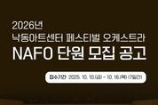 부울경문화뉴스 관리자 기자 | 부산 강서구는 서부산 최초의 클래식 전문 공연장인 낙동아트센터와 함께할 ‘낙동아트센터 페스티벌 오케스트라(NAFO)’ 단원을 공개 모집한다고 밝혔다. 이번 모집을 통해 강서구는 수준 높은 음악적 역량과 열정을 지닌 연주자들로 오케스트라를 구성해, 향후 낙동아트센터에서 품격 있는 클래식 공연을 시민들에게 선보일 계획이다. NAFO는 내년 1월 낙동아트센터 정식 개관 기념 무대에서 말러 교향곡 제8번, 오페라 아이다, 발레 백조의 호수 등 세계적인 명작을 연주할 예정이다. 이에 앞서 오는 12월 24일, 말러 교향곡 제8번과 베토벤 교향곡 제9번 4악장을 연주하는 프리뷰 콘서트를 개최해, 정식 개관 전부터 웅장한 음악의 울림을 선사하며 낙동아트센터에 대한 시민들의 기대감을 높일 전망이다. 모집 분야는 ▲오케스트라 악장 ▲수석 ▲단원 ▲기획지원단원이며, 만 18세 이상이면 누구나 지원 가능하다. 접수 기간은 10월 10일부터 16일 오후 5시까지로, 강서구청 홈페이지에서 참여신청서를 내려받아 전자메일로 제출하면 된다. 전형은 기획지원단원의 경우 면접, 오케스트라 단원의 경우