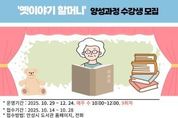 부울경문화뉴스 관리자 기자 | 안성시 중앙도서관은 오는 10월 29일부터 12월 24일까지 매주 수요일 오전 10시부터 12시까지(총9회) 진행되는 『옛이야기 할머니』양성과정의 수강생을 모집한다. 이번 과정은 우리 전통 설화와 구전문화를 이해하고, 이를 바탕으로 어린이들에게 옛이야기를 들려줄 수 있는 이야기 구연 역량을 키우는 특화 교육 프로그램으로 교육은 송경애 강사(한국국학진흥원 및 아름다운 이야기 할머니 교육강사)가 진행하며, 이야기 전달 기법, 발성 훈련, 스토리텔링 실습 등 실질적인 교육 중심으로 구성된다. 참여 대상은 60세 이상 여성 20명으로, 접수는 10월 14일부터 도서관 홈페이지, 전화 또는 방문을 통해 신청할 수 있다. 도서관 관계자는 “지역 어르신들이 삶의 지혜와 전통 이야기를 전하며 세대 간 소통의 다리를 놓는 뜻깊은 과정이 될 것이고 본 과정을 수료한 참여자들은 2026년 ‘책 읽어주기’ 자원봉사 프로그램에 참여할 수 있도록 안내할 계획이다.”라고 전했다.