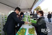 부울경문화뉴스 관리자 기자 | 무주군이 10월 30일부터 11월 1일까지 3일간 무주농협 하나로마트 본점에서 ‘무주 반딧불 샤인머스캣’ 판촉 행사를 연다. 시식 행사를 겸한 이번 행사에는 총 2천 박스 4톤 물량이 공급될 예정이다, 2kg 1박스가 7천 원으로 시중보다 30% 정도 저렴하게 판매돼 소비자들로부터 큰 호응을 얻고 있다. 행사 첫날인 30일에는 황인홍 무주군수와 오광석 무주군의회 의장, 곽동열 무주농협장, 양시춘 무주군농협조합공동사업법인 대표, 김범석 농협중앙회 무주군지부장 등 20여 명이 함께 무주 반딧불 샤인머스캣의 우수성을 알리며 소비 촉진에 나서 의미를 더했다. 무주반딧불조합공동사업법인 관계자는 “무주 반딧불 샤인머스켓은 높은 당도와 우수한 식감, 월등한 품질로 국내외에서 모두 큰 인기를 얻고 있다”라며 “이번 판촉 행사가 지역주민들에게는 무주산 샤인머스캣의 우수성을 알리는 계기가 되고. 판로 확보에 어려움을 겪는 농가들에게는 소득증대의 기회가 되길 바란다”라고 전했다. 현재 무주군 내 샤인머스캣 재배 규모는 58농가 28ha로, 무주군은 올해 가격안정기금사업을 통해