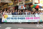 부울경문화뉴스 관리자 기자 | 대구 북구청은 민족 고유 명절인 추석을 앞두고 10월 1일 14시 30분부터 팔달신시장에서 구청장과 간부공무원 등 50여 명이 참여하여 장보기 행사를 가졌다. 해마다 명절이면 온라인 쇼핑몰, 대규모 유통업체 등 이용으로 위축된 전통시장에 활력을 불어넣고자 장보기 행사를 개최했다. 이날 장보기 행사에는 배광식 북구청장을 비롯한 구청 실·과장 이상 간부공무원과 참여 희망 직원 등 50여 명이 자율적으로 참여하여 전통시장 곳곳을 돌며 제수용품과 다양한 먹거리를 구입하면서 각 상인들과는 전통시장의 상황 등을 소통하고, 시장을 찾는 주민들에게는 온누리상품권 환급행사와 시장 홍보 활동도 병행했다. 배광식 북구청장은 “추석을 맞이하여 물가상승과 경기침체로 어려움을 겪고 있는 전통시장에 활력을 불어넣고 상인들에게 조금이라도 도움이 되고자 장보기 행사를 마련했다.”며, “이번 행사를 계기로 더 많은 주민들이 전통시장을 이용하고, 추석 연휴 동안 가족들과 즐거운 명절을 보내시길 바란다.”고 전했다.