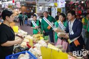 부울경문화뉴스 관리자 기자 | 대전 대덕구는 1일 신탄진·중리·법동 전통시장에서 ‘2025 추석맞이 전통시장 장보기’ 행사를 열고 상인 격려와 장보기 캠페인을 펼쳤다고 밝혔다. 이번 행사는 추석을 앞두고 물가 상승과 경기 침체로 어려움을 겪고 있는 전통시장에 활력을 불어넣고, 주민들의 전통시장 이용을 독려하기 위해 마련됐다. 이날 대덕구청장과 구의원, 명예구청장, 상인회, 주민자치회, 자원봉사단체 등 500여 명이 동참해 제수용 품목을 직접 구매하고, 시민들에게 전통시장 이용을 널리 알렸다. 특히, 현장에서는 소비 촉진을 위한 지원책을 함께 안내했다. 10월 1~5일 진행되는 ‘농·축·수산물 온누리상품권 환급행사’를 소개하며, 전통시장에서 해당 품목을 구입할 경우 구매액의 최대 30%를 온누리상품권으로 돌려받을 수 있음을 알렸다. 아울러 구는 장보기 행사와 더불어 시장 질서 점검도 병행했다. 원산지 표시 이행 여부, 불공정거래 행위 등을 현장에서 확인하고, 물가안정 캠페인을 통해 합리적 소비와 건전한 유통 질서 확립을 당부했다. 최충규 대덕구청장은 “전통시장은 지역경제의 뿌리이자 골목상
