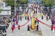 부울경문화뉴스 관리자 기자 | ‘K-축제’로 자리매김한 정조대왕 능행차 공동재현이 28일 수원에서 열렸다. 오전에 세차게 비가 내렸지만 수원종합운동장에서 본격적인 행렬이 시작된 오후에는 비가 그쳐 수많은 관람객이 정조대왕 능행차 재현을 함께 즐겼다. 정조대왕 능행차 재현 행렬(수원 구간)은 오전 노송지대(1구간)에서 시작됐다. 오후 3시 30분 수원종합운동장에서 행렬이 출발했고, 종합운동장에서 행궁광장에 이르는 길 양쪽은 관람객들로 가득했다. 시민 2000여 명과 말 70여 필이 행렬에 참여했다. 행궁광장에서 정조대왕이 입궁하는 퍼포먼스로 능행차 공동재현은 마무리됐다. 행궁광장에서는 국제자매도시 공연단의 축하공연, 정조대왕 행차를 환영하는 축하행렬인 수원화성 퍼레이드, 정조대왕 능행차 재현·입궁 퍼포먼스, KBS 국악관현악단과 국악인 김영임, 유태평양의 협연 콘서트가 이어졌다. 이재준 수원시장, 이재식 수원시의회 의장, 수원 지역 국회의원들도 행렬에 참여하며 시민들과 함께했다. 행궁광장에서 시민들을 만난 이재준 시장은 “수많은 시민이 함께 즐긴 정조대왕 능행차 공동재현은 정조대왕이 꿈꿨