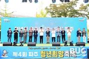 부울경문화뉴스 관리자 기자 | 파주시는 지난 27일 금릉역 앞 중앙광장에서 열린 ‘제4회 파주 청년희망축제’가 시민들의 뜨거운 호응 속에 성공적으로 마무리됐다고 밝혔다. 올해 축제는 ‘파주청년, 다시 도약하다!(Paju Youth Again, Jump Up!)’을 주제로, 도약하는 청년세대의 열정과 활력을 시민과 함께 나누는 장으로 마련됐다. 이번 축제의 백미는 개막식과 함께 진행된 ‘파주 청년 비전선포식’이었다. 청년정책협의체 공동위원장은 무대에서 ‘청년이 뿌리내리는 도시, 파주’라는 비전을 선포하며, 청년과 지역사회가 함께 나아갈 미래의 방향을 제시했다. 특히 청년들이 직접 낭독한 선언문과 청년친화도시 지정을 위한 기념행사는 파주시의 확고한 의지를 대외적으로 알리는 계기가 됐다. 오후 2시부터 8시까지 진행된 이번 축제는 ▲사전공연 ▲청년 골든벨 ▲청년 가요제 ▲청년공간 특별강좌 ▲프리미엄 수제 맥주 시음 ▲청년창업가 플리마켓 ▲무료 체험공간 ▲대형 ‘파랑’ 포토존 등 다채로운 프로그램으로 꾸려졌다. 가요제 무대에서는 청년들의 끼와 열정이 빛났으며, 청년창업가 판매공간 및 수제 맥주 시음 공간은