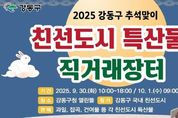 부울경문화뉴스 관리자 기자 | 강동구는 2025년 추석을 맞이해 오는 9월 30일과 10월 1일 이틀간 강동구청 열린뜰에서 ‘친선도시 특산물 직거래장터’를 개최한다고 29일 밝혔다. 이번 행사는 강동구가 전국 지자체와 맺은 교류 협력을 바탕으로, 지역 농가의 판로 확대와 도농 상생을 도모하기 위해 마련됐다. 올해 새롭게 친선결연을 맺은 강원도 영월군을 포함해 총 21개 국내 도시가 참여하며, 직접 산지에서 올라온 35개 농가가 다양한 특산물을 선보일 예정이다. 특히 원주 찐빵, 홍천 한과, 거창 곶감, 의성 복숭아, 완도 미역 등 전국 각지에서 올라온 신선하고 품질 좋은 농특산물을 시중가 대비 최대 40% 저렴한 가격에 구매할 수 있어 구민들의 많은 관심이 기대된다. 이번 장터는 9월 30일 오전 10시부터 오후 6시까지, 10월 1일 오전 9시부터 오후 5시까지 운영되며, 누구나 자유롭게 방문해 구매 가능하다. 이수희 강동구청장은 “이번 직거래장터는 구민들에게는 믿을 수 있는 먹거리를 제공하고, 참여 농가에는 안정적인 판로를 마련해주는 뜻깊은 행사”라며, “앞으로도 친선도시와의 협력을 통해 지속