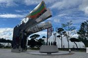 부울경문화뉴스 관리자 기자 | 영동세계국악엑스포조직위는 영동세계국악엑스포 개막과 함께 행사장 내에 설치된 상징조형물인 ‘전통의 울림, 미래를 울리다’의 제막식을 26일 개최했다고 밝혔다. 이날 제막식에는 국악엑스포 공동위원장인 정영철 영동군수, 윤영달 크라운해태 회장을 비롯해 민의식 국악 엑스포 집행위원장, 신현광 영동군의회 의장 등 주요 내빈이 참석해 자리를 빛냈다. 국악엑스포 상징조형물은 복합문화예술회관 옆에 높이 6미터, 세로 8.7미터, 가로 6.7미터 규모로, 금속 조각가 심병건 작가가 제작했다. ‘ㄱ’자 기울기에서 가장 맑은 소리를 내는 115도로 깎는 편경을 모티브로 하여 제작된 기하학적 구조의 세 개의 기둥은 국악이 지닌 맑고 청아한 울림을 형상화한다. 또, 음의 파동과 리듬으로 시각화된 율관과 한국 고유의 정체성을 의미하는 오방색 띠로 열린 세계를 향해 뻗어 나가는 에너지를 나타낸다. 세 개의 기둥과 함께, 중앙의 상단에 편종과 편경을 의미하는 파이프를 조형하여 ‘울림과 진동’이 이곳에서 시작돼 세상에 울려 퍼져나감을 표현했다. 16개의 편종은 관람객들이 각각을 두드려 직접 울림과