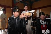 부울경문화뉴스 관리자 기자 | 천년 역사의 대설위 상주향교와 함창향교에서는 2025년(을사) 9월 25일(음 8월 4일) 공기 2576년 추계(秋季) 석전대제(釋奠大祭)를 봉행했다. 이날 석전대제에는 지역의 유림 등 200여 명이 참석한 가운데 함창향교에서는 초헌관에 강영석 상주시장, 아헌관에 김종현 상주교육지원청장, 종헌관에 김익상 시의원, 상주향교에서는 곽희상 사무국장의 개좌 선언에 이어 초헌관에 김상동 유림, 아헌관에 황의종 유림, 종헌관에 박창수 유림이 각각 수고했다. 석전대제는 1986년 국가 중요 무형유산 제85호로 지정된 의식행사로 전국 234개 향교에서 매년 음력 2월과 8월의 상정일(上丁日)에 공자를 모시는 사당인 문묘에서 옛 성현들의 학덕을 추모하며 지내고 있다. 특히 상주향교에서는 상주향교의 발전을 위해 헌신적으로 봉사해 온 김건수(金健洙) 재무수석장의에 대하여 제7회 상주향교 석전 회중(會中)으로 표창을 했다. 부상은 경상북도 무형유산 제22호 김선익 명장께서 직접 제작한 향로를 수여했다. 향로 표면에는 추계석전 시상내역에 대해 간단하게 글씨를 새겼으며, 시상 표창장은 족자로 제작했는데,
