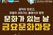 부울경문화뉴스 관리자 기자 | 충북 단양군은 오는 9월 26일부터 12월까지 매월 마지막 금요일 저녁, 올누림센터 4층 강당에서 ‘2025 문화가 있는 주간 금요문화마당’을 운영한다고 밝혔다. 이번 프로그램은 문화기반시설을 활용한 정기 공연 활성화를 위해 마련된 것으로, 주민과 관광객이 함께 즐길 수 있는 소규모 공연을 통해 지역 문화 향유 기회를 넓히고자 기획됐다. 공연은 매월 다른 장르로 꾸며진다. 9월 26일 톱연주 공연을 시작으로 10월 31일 하모니카 연주, 11월 28일 클래식 공연, 12월 26일 영화 상영이 이어진다. 회차마다 약 100여 명 내외가 관람할 수 있으며, 관람은 선착순으로 입장 가능하다. 군 관계자는 “문화가 있는 주간 금요문화마당은 일상 속에서 문화를 접할 수 있는 소중한 기회가 될 것”이라며 “앞으로도 다양한 문화 프로그램을 통해 군민과 관광객이 함께 즐길 수 있는 문화공간을 확대해 나가겠다”고 말했다.