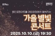 부울경문화뉴스 관리자 기자 | 용인문화재단은 오는 10월 10일 오후 7시 30분, 새롭게 단장한 용인포은아트홀 야외광장에서 ‘가을 별빛 콘서트’를 개최한다. 이번 공연은 가을밤의 정취 속에서 시민들에게 특별한 추억을 선사하고, 용인의 대표 광장형 축제를 알리기 위해 마련됐다. ‘가을 별빛 콘서트’에는 가수 거미, 유리상자 이세준, 힙합 아티스트 행주·마린·블랙나인, 그리고 소프라노 정나리가 출연해 대중음악·클래식·힙합을 아우르는 다채로운 무대를 선보일 예정이다. 이번 공연은 무료로 진행되며, 사전 댓글 이벤트를 통한 예약석(현재 마감)과 공연 당일 현장 선착순 입장석으로 운영된다. 현장 참여자는 오후 5시부터 대기 후 오후 6시부터 선착순 입장할 수 있으며, 돗자리석과 계단석 등 다양한 방식으로 자유롭게 관람할 수 있다. 특히 이번 ‘가을 별빛 콘서트’는 시민 참여형 현장 이벤트도 마련됐다. 입장객 1,800명에게는 별 모양 무드등이 기념품으로 증정되며, 공연 전에는 중계 카메라 이벤트를 통해 용인포은아트홀 공연 티켓이 제공된다. 본 공연에 앞서 오후 4시부터 예술교육 매개자 ‘아트러너’가 운영하는 문화예술