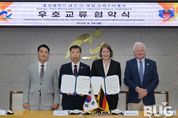 부울경문화뉴스 관리자 기자 | 울산 남구(구청장 서동욱)가 제29회 울산고래축제를 방문한 독일 오버우어젤시(시장 안티에 룽게)와 우호교류 협약을 체결했다. 이는 울산지역 기초자치단체 중 최초로 유럽권 도시와의 공식 교류가 성사된 사례로, 지역 국제화의 새로운 이정표가 될 전망이다. 26일 남구청 3층 회의실에서 열린 협약식은 안티에 룽게 시장을 비롯한 오버우어젤시 방문단 8명과 울산 남구 측 10여 명이 참여한 가운데 양측 참석자 소개와 홍보영상 시청, 협약서 서명, 기념품 전달 등의 순으로 1시간 동안 진행됐다. 오버우어젤시는 프랑크푸르트 인근에 위치한 도시로 교통·교육·자연환경·치안 등 빼어난 거주 여건을 가져 다수의 외국인이 조화롭게 살아가는 독일의 대표적인 모범 주거 도시이다. 남구는 지난 6월 오버우어젤시와 우호교류의향서 체결을 시작으로, 9월에는 오버우어젤시를 방문해 ‘한국-오버우어젤시 만남 축제’에 참가하고 울산고래축제와 장생포 수국페스티벌을 홍보한 바 있다. 한편 남구는 26일 인천 계양구(구청장 윤환)과는 자매결연 협약을 체결하고 두 도시의 공동 발전과 교류 증진을 위