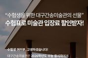 부울경문화뉴스 관리자 기자 | 대구간송미술관이 14일부터 26학년도 수능 수험생을 대상으로 다양한 혜택을 제공한다. 수험표를 지참한 수험생에게는 미술관 입장료 최대 30% 할인 혜택(동반 1인 포함)이 제공되며, 이벤트 참여 시 다양한 기념품도 증정된다. 이와 함께 방송인 서경석, 영화감독 이준익이 참여하는 ‘간송예술강좌’를 개최하여 전시에 대한 다양한 의미를 되돌아보는 특별한 시간을 가진다. 수험생 대상 입장료 30% 할인(동반 1인 포함) 및 참여형 이벤트 진행, 11월 14일부터 수험생 입장료 30% 할인은 수능 다음날인 11월 14일부터 12월 31일까지 진행된다. 현재 미술관에서 전시 중인 광복 80주년 기념 기획전 《삼청도도 – 매·죽·난, 멈추지 않는 이야기》와 상설전 모두 할인 혜택을 받을 수 있다. 수험생 우대를 받기 위해서는 수능 수험표, 수시 합격증 등 수험생임을 증명할 수 있는 증빙서류를 매표소에 제시하면 된다. 이와 함께 미술관은 다양한 참여 이벤트를 마련했다. 연말까지 수험생 우대를 받고 입장한 선착순 250명에게 간송 대표 소장품이 담긴 컬러링 북을 선물한다. 더불어 대구간송미술관 카