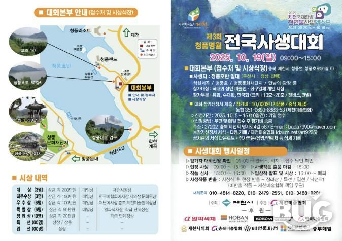 ‘청풍명월’이라는 대회명처럼 맑은 바람과 고요한 달빛이 감도는 청풍호와 그 주변 명소들의 가을 풍경을 주제로, 참가자들은 유화·수채화·한국화 등 3개 부문에서 현장 사생을 진행하게 된다.