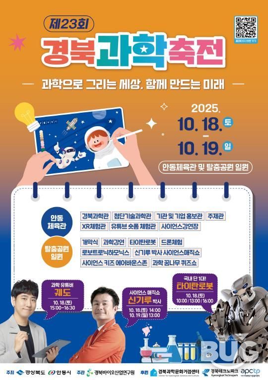 부울경문화뉴스 관리자 기자 | 경상북도와 안동시가 주최하고 (재)경북바이오산업연구원이 주관하는 ‘제23회 경북과학축전’이 오는 10월 18일부터 19일까지 2일간 안동체육관 및 탈춤공원 일원에서 열린다.