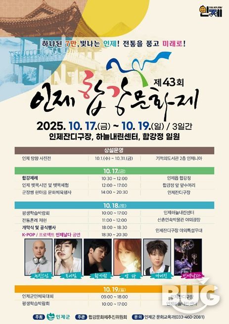 부울경문화뉴스 관리자 기자 | 인제군 대표 향토문화축제인 ‘제43회 합강문화제’가 10월 17일부터 19일까지 합강정과 인제 잔디구장 일원에서 열린다.