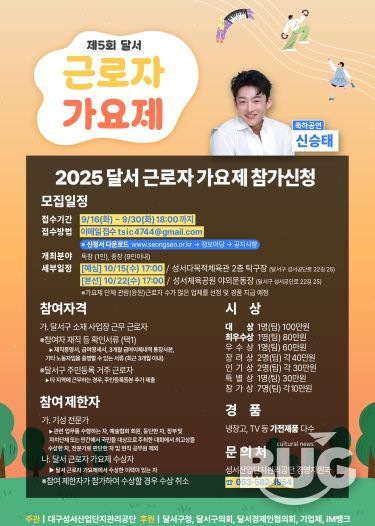 슬로건은 “노래로 하나 되는 달서, 음악으로 웃는 직장”으로, 근로자들이 일상의 피로를 풀고 서로의 열정을 나누는 화합의 무대가 될 전망이다.