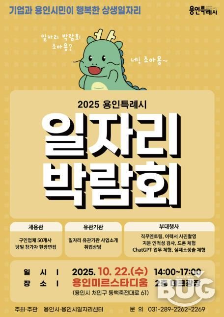 부울경문화뉴스 관리자 기자 | 용인특례시는 오는 22일 오후 2시부터 5시까지 용인미르스타디움 2층 덱(deck) 광장에서 2025년 하반기 일자리박람회를 개최한다고 17일 밝혔다.