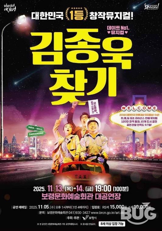 부울경문화뉴스 관리자 기자 | 보령시가 11월 13일부터 14일까지 이틀간 오후 7시 보령문화예술회관 대공연장에서 뮤지컬 ‘김종욱 찾기’ 공연을 개최한다.