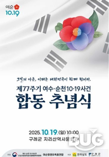 부울경문화뉴스 관리자 기자 | 전남 구례군은 여순사건의 역사적 의미를 되새기고 희생자와 유족들을 위로하기 위한‘여순사건 제77주기 정부주최 합동추념식’이 오는 19일 구례군 지리산역사문화관에서 개최된다고 밝혔다.