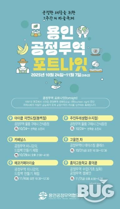 부울경문화뉴스 관리자 기자 | 용인특례시와 용인공정무역협의회는 10월 24일부터 11월 7일까지 2주간 용인시 공정무역 포트나잇 축제를 개최한다.