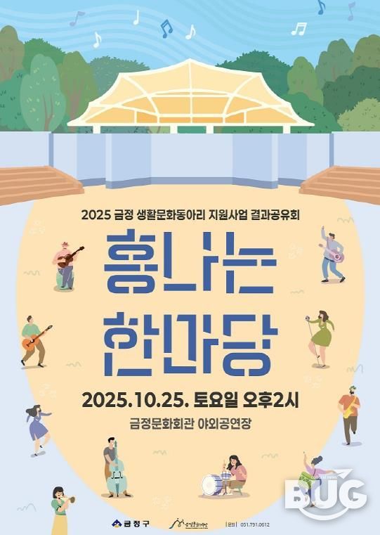 부울경문화뉴스 관리자 기자 | 부산시 금정구 금정문화재단은 금정생활문화동아리 지원사업 '흥나는 금정'의 결과 공유회 “흥나는 한마당”프로그램을 오는 10월 25일 오후 2시부터 오후 4시까지 금정문화회관 야외공연장에서 개최한다고 밝혔다.