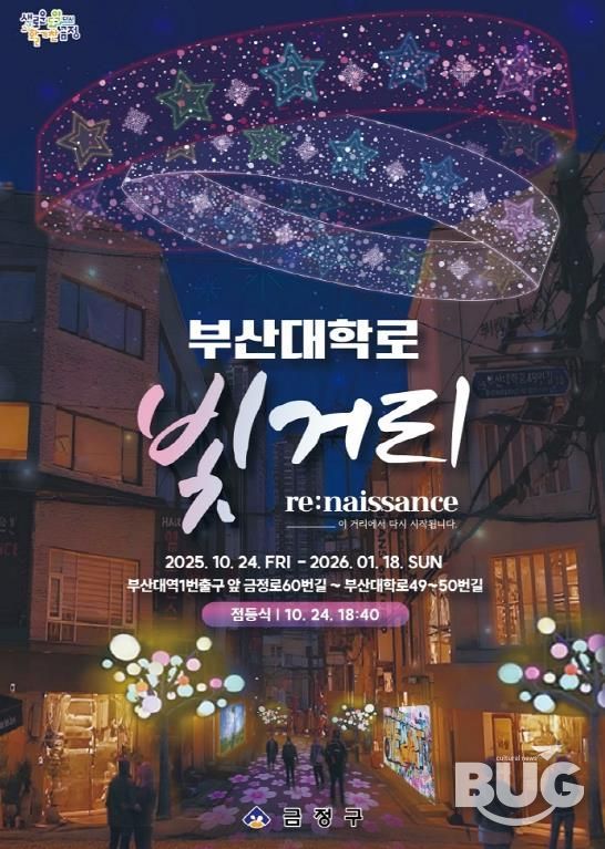 부울경문화뉴스 관리자 기자 | 부산시 금정구는 오는 10월 24일부터 내년 1월 18일까지 부산대 상권활성화를 위한『부산대학로 Re:naissance 빛거리』를 조성 운영한다고 밝혔다.