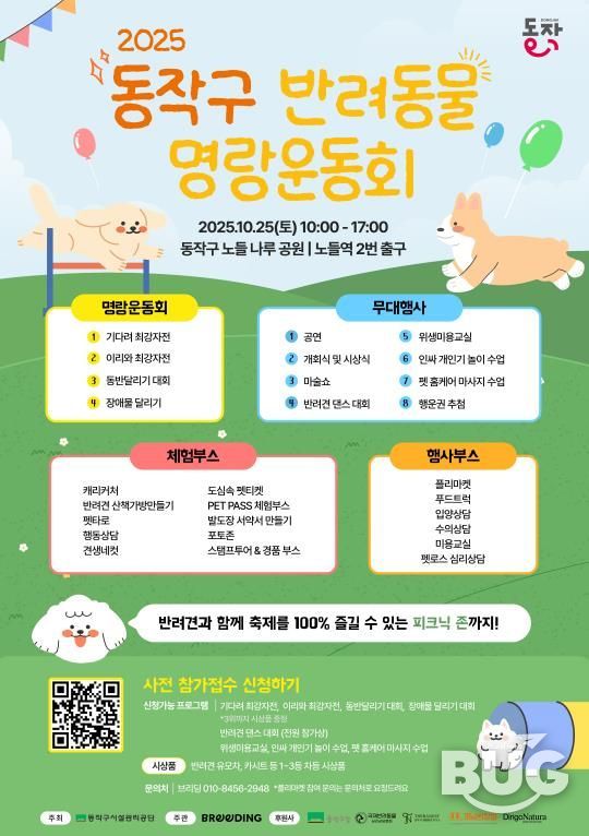부울경문화뉴스 관리자 기자 | 동작구가 오는 25일 노들나루공원(노량진로 247)에서 ‘2025 반려동물 명랑운동회’를 개최한다고 밝혔다.