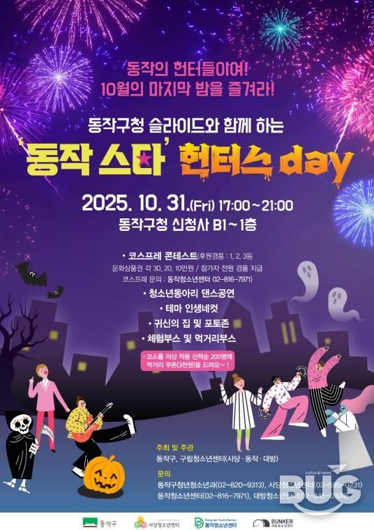 부울경문화뉴스 관리자 기자 | 동작구가 오는 10월 31일 오후 5시부터 9시까지, 구청 신청사에서 청소년이 직접 기획하고 운영하는 제1회 핼러윈 축제'‘동작 스타’ 헌터스day'를 개최한다고 밝혔다.