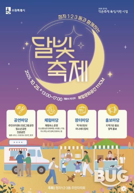 부울경문화뉴스 관리자 기자 | 수원시 장안구 정자2동 주민자치회는 오는 25일, 오후 1시부터 복합문화공간 111CM에서 ‘정자1·2·3동과 함께하는 달빛축제’를 개최한다.