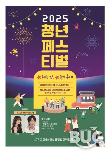 부울경문화뉴스 관리자 기자 | 고성군은 오는 10월 31일, 오후 7시부터 9시까지 남포항 다목적광장 잔디공원에서『2025 고성군 청년 페스티벌』을 개최한다.