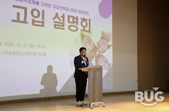 부울경문화뉴스 관리자 기자 | 마포구는 10월 21일 오후 6시 30분, 마포중앙도서관 6층 마중홀에서 변화하는 교육과정과 복잡한 입시 제도로 어려움을 겪고 있는 관내 학생 및 학부모들에게 유용한 정보를 제공하고자 ‘2026학년도 고입설명회’를 개최했다.