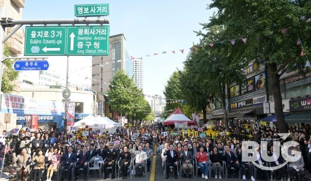 축제는 을지로3가역에서 명보아트홀, PJ호텔에 이르는 거리를 무대로 펼쳐졌다. 해군홍보대의 비보잉 공연과 풍물놀이가 흥을 돋우며 개막을 알렸다. 이어 중구의 새로운 도시브랜드 ‘이순신1545 중구’가 공식 선포됐다. 이 브랜드는 이순신 장군의 탄생 연도 ‘1545년’에서 착안해 영웅을 품은 중구가 위대한 역사의 시작점임을 의미한다.