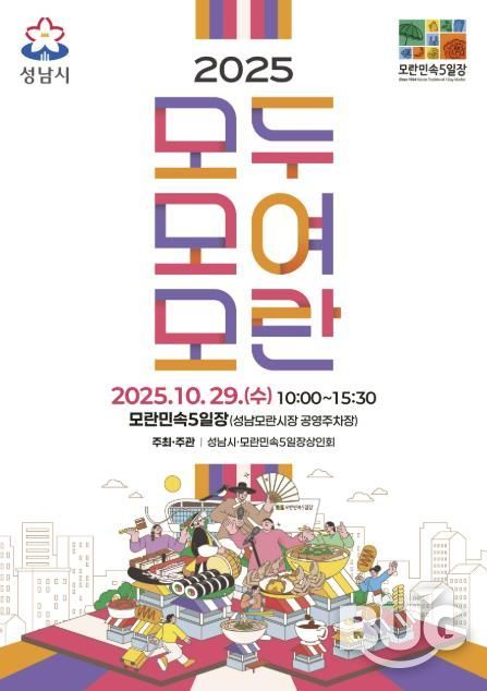 부울경문화뉴스 관리자 기자 | 성남시는 오는 10월 29일 오전 10시부터 오후 3시 30분까지 모란민속5일장(중원구 둔촌대로 68)에서 ‘2025 모두모여모란’ 축제를 연다.