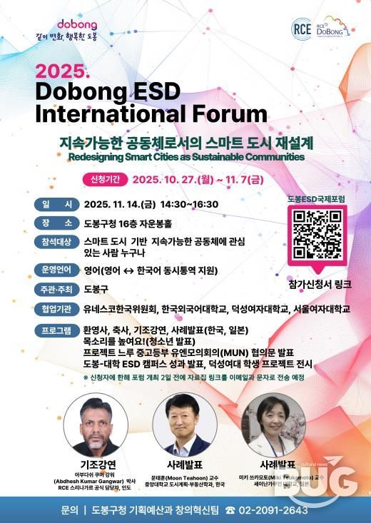 부울경문화뉴스 관리자 기자 | 서울 도봉구가 오는 11월 14일 도봉구청 16층 자운봉홀에서 ‘2025 도봉 ESD(지속가능발전교육) 국제포럼’을 개최한다.