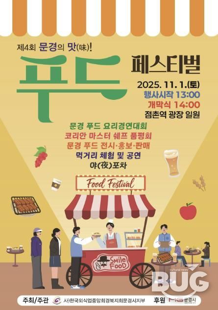 부울경문화뉴스 관리자 기자 | 문경시는 오는 11월 1일 점촌역 광장에서 한국외식업중앙회 경북문경시지부 주최·주관으로 '제4회 문경의 맛! 푸드페스티벌'을 개최한다.