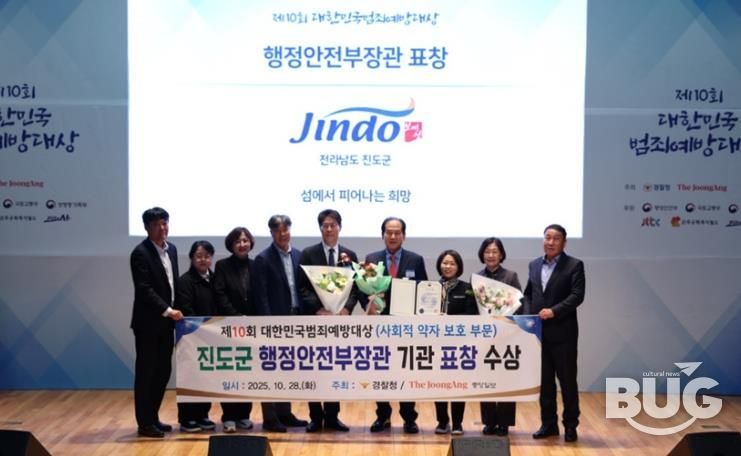 부울경문화뉴스 관리자 기자 | 진도군은 10월 28일에 경찰청과 중앙일보, 제이티비씨(JTBC)가 주관한 ‘제10회 대한민국 범죄예방대상’ 시상식에서 사회적 약자 보호 부문 ‘행정안전부 장관상’을 수상했다고 밝혔다.