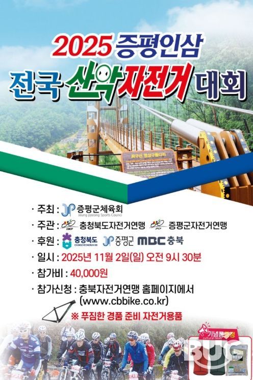 부울경문화뉴스 관리자 기자 | ‘2025 증평인삼 전국산악자전거대회’가 오는 11월 2일 충북 증평 율리휴양촌에서 개회식을 시작으로 본격 막을 올린다.