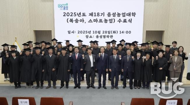 부울경문화뉴스 관리자 기자 | 음성군농업기술센터는 지난 28일 음성농업대학 학장인 조병옥 군수를 비롯한 농업기술센터 관계자, 수료생 등이 참석한 가운데 ‘2025년도 제18기 음성농업대학 수료식’을 개최했다.