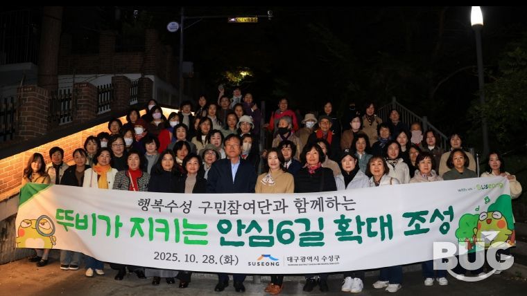 ‘뚜비가 지키는 안심6길’은 야간 조도가 낮아 주민들의 이용이 다소 제한적이었던 범어3동 청구성조타운 뒤 골목길에 발광 엘이디(LED) 경관조명을 설치해, 밝고 안전한 보행환경으로 개선한 사업이다. 이번 확대 조성으로 주민들이 편안하게 이용할 수 있는 생활안전 공간으로 자리잡았다.