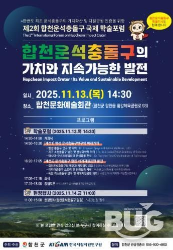 부울경문화뉴스 관리자 기자 | 합천군은 11월 13일 오후 2시 30분에 합천문화예술회관 대공연장에서'제2회 합천운석충돌구 국제 학술포럼'을 개최한다고 30일 밝혔다.