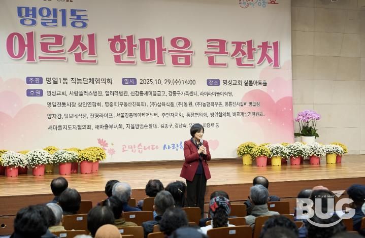 부울경문화뉴스 관리자 기자 | 서울 강동구 명일1동은 지난 10월 29일 명성교회 샬롬아트홀에서 관내 어르신 250여 명을 모시고, ‘명일1동 어르신 한마음 큰잔치’를 성황리에 개최했다고 밝혔다.