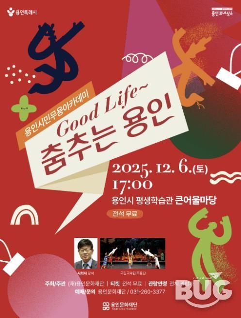 'Good Life~ 춤추는 용인'은 2025년 새롭게 출범한 ‘용인시민무용아카데미’에서 약 1년간 교육 과정을 통해 한국 무용(태평무, 산조춤, 버꾸춤, 장고춤, 소고춤, 탈춤)과 생활 무용(라인 댄스, 셔플 댄스, 뮤지컬 댄스, 벨리 댄스)을 배우고 익힌 시민들이 직접 무대에 오르는 의미 있는 공연이다.