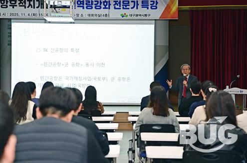 부울경문화뉴스 관리자 기자 | 대구 동구청은 지난 4일 구청 대회의실에서 직원들을 대상으로 ‘공항후적지개발 직원 역량강화 전문가 특강’을 실시했다.