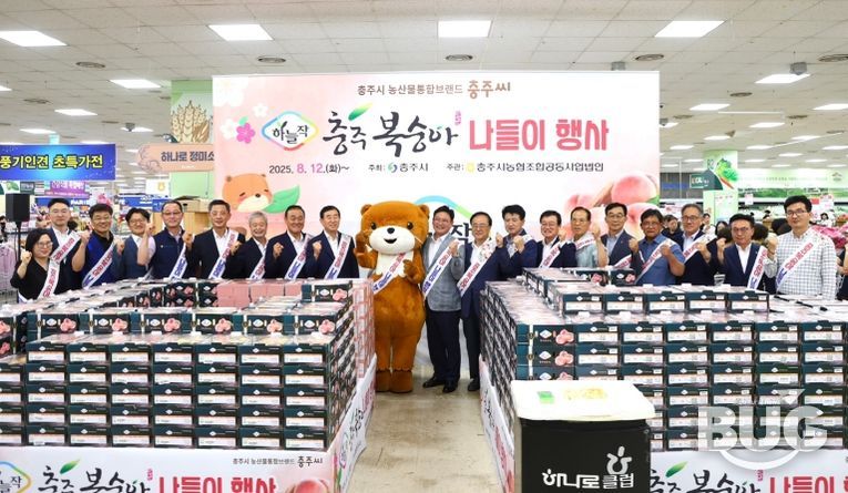 부울경문화뉴스 관리자 기자 | 충주시는 12일 하나로유통 청주점에서 ‘2025년 하늘작 충주복숭아 나들이 행사’ 개장식을 열고, 전국 대도시 소비자 공략의 포문을 열었다.