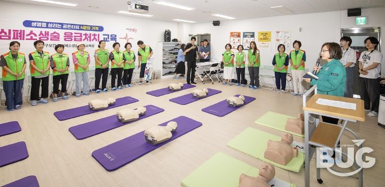 부울경문화뉴스 관리자 기자 | 서울 용산구는 지난 8월 12일 보건소 심폐소생술 강의실에서 지역자율방재단원 50명을 대상으로 심폐소생술(CPR), 하임리히법, 자동심장충격기(AED) 사용법 등 실전형 응급처치 교육을 진행했다.