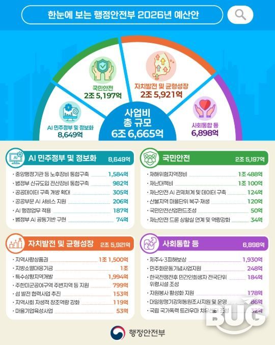 부울경문화뉴스 기자 | 행정안전부는 2026년도 예산안을 76조 4,426억 원 규모로 편성했다고 밝혔다. 예산안은 9월 2일 국회 제출 후 상임위, 예결위 심사를 거쳐 본회의 의결을 통해 12월에 확정될 예정이다.