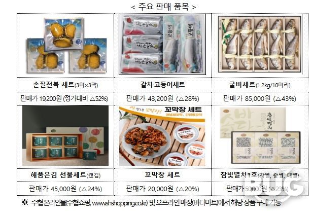 추석 기간에 저렴한 가격으로 구입할 수 있는 ‘수산물 민생선물세트’도 마련했다. 참조기, 갈치 등 제수용으로 많이 사용되는 품목과 전복 등 소비 촉진이 필요한 품목 위주로 구성했으며, 수협 온·오프라인 매장 및 모바일 플랫폼(카카오톡 선물하기)에서 구매할 수 있다. 최대 45% 할인하여 판매할 예정이다.
